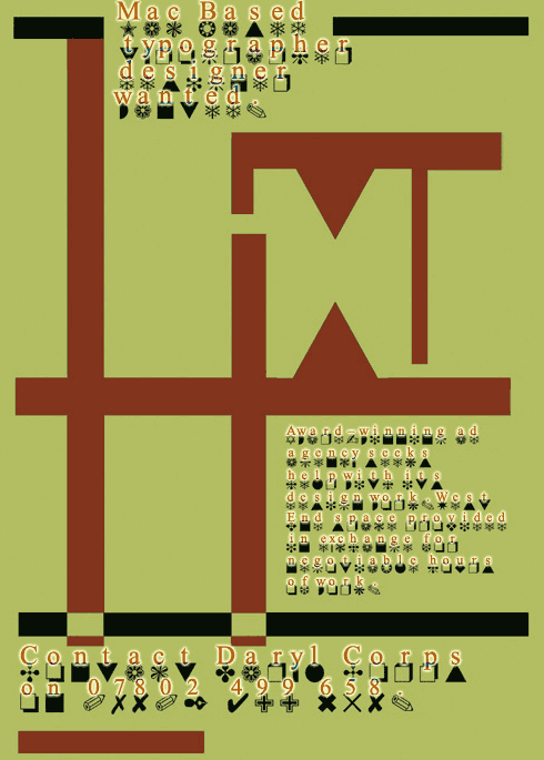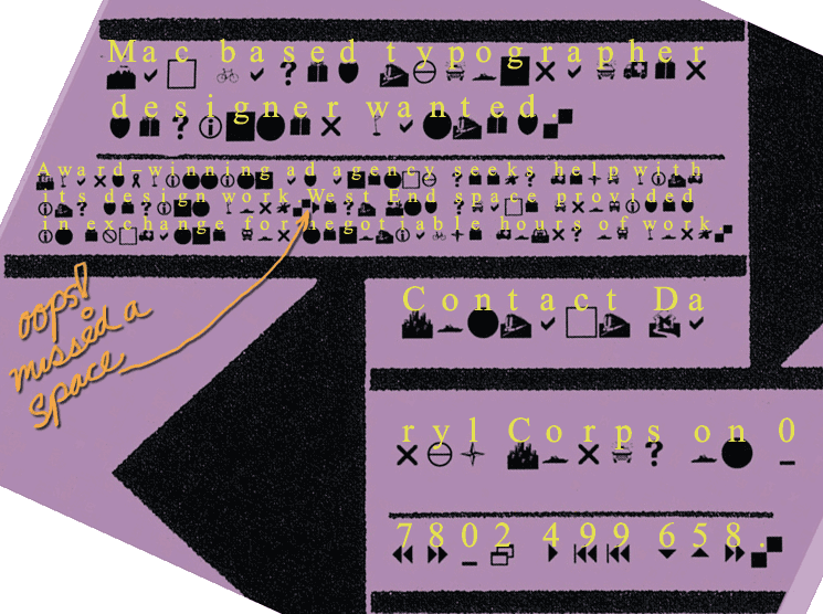 Thanks to Patrick Martin for sending visual translations of the want ads that were so good, I decided to co-opt them for my own use here.