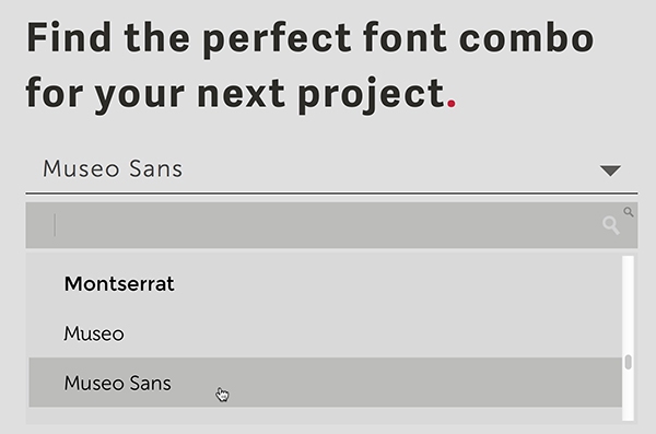 A recent addition to my stable of type-centric tools is Typegenius. Created as part of Muno Creative’s 20/20 Challenge to create 20 products in 20 weeks, Typegenius is simply a type-matching tool. Pulling from a selection of Google- and Typekit-curated typefaces, the concept is simple. Start by choosing a typeface you want to use in your print or web layout and find a suitable partner to complement your choice.