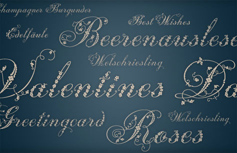 The four faces in the family are Weingut Script, Weingut Script Flourish, Weingut Flourish, and Weingut Swashes and Ornaments. All four are 40% off, but only until March 26, 2011.