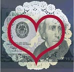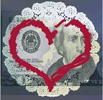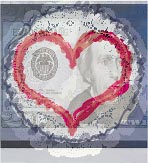 Steuer’s concept for the card was based on the phrase “Money can’t buy me love.” She decided to start from a hand-drawn heart and images of currency and a lace doily.