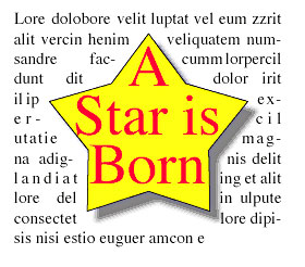 However, it can also be a problem if you want to put some text inside an object that has a text wrap applied to it. Figure 6 is a good example of this problem. You want the words “A Star is Born” to appear inside the star. However, because that star has a text wrap applied to it, the text is not visible inside the star.