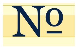 Besides the ordinal º and ª, some typefaces also offer the numero symbol—a combination of the capital N with the masculine ordinal º, often underlined. This typographic abbreviation of the word “number” indicates ordinal numeration, especially in addresses, names, and titles. If the font you’re using doesn’t have this glyph, in English it’s acceptable to substitute it with the abbreviation “No.” including the full stop at the end.