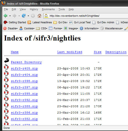 You can download sIFR here. At that link, you’ll find all the available beta builds of version 3.0; download the latest version (Figure 2). If you experience problems with that build, try using an earlier build.