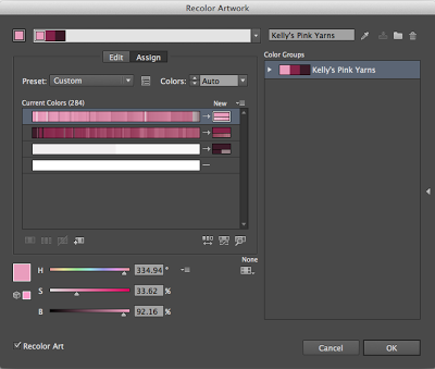 13. Map the colors to your color group. On the right-hand side of the dialog box, click on the name of your color group. See how the colors are all grouped into a few rows now instead of a gigantic scrolling list?