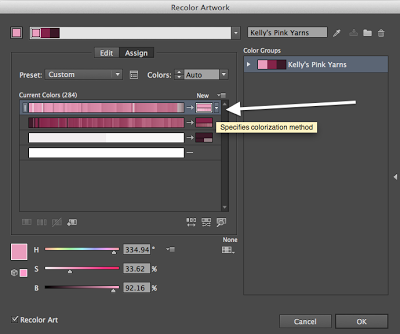 14. Click on little downward-pointing triangle next to one of the pink rectangles in the New column. This is where you can specify the colorization method.