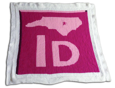19. Knit the blanket. I cast on 180 stitches for the icon, plus 10 white stitches on each side. I knit the entire afghan in stockinette stitch. As I went, I decided that the it would have been too much work to knit that little series of Outer Banks islands, so I opted to fill in the water area with pink.