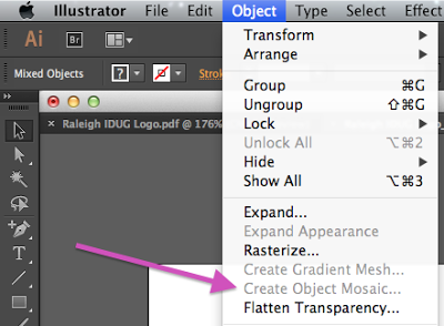 5. Select your artwork and try to apply Create Object Mosaic. I say “try” because as you’ll notice in the screenshot below, the Object Mosaic command may be grayed out.