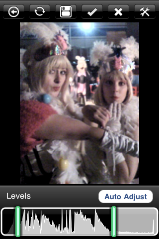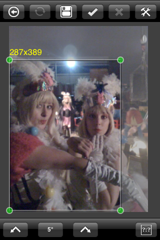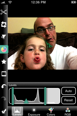 MacPhun’s Perfect Photo ($.99) is almost a perfect iPhone photo editor. Its huge list of tools includes crop, noise reduction, exposure, color temperature, straightening, flipping and rotating, brightness/contrast, sharpening levels, and color balance. I particularly like Perfect Photo’s free cropping and cropping constrained to a specific aspect ratio.