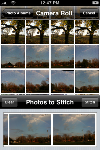 There are two other basic editing chores you might want to perform on your iPhone. While the camera packs a decent lens, it’s not especially wide. However, you can easily shoot panoramas using the camera and stitch them in-phone using Cloudburst Research’s AutoStitch ($1.99). Simply select a series of overlapping images and AutoStitch merges them into a single panoramic shot.