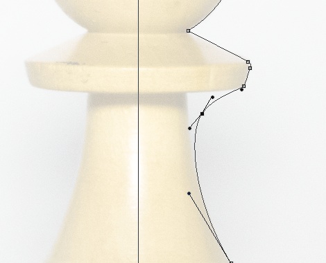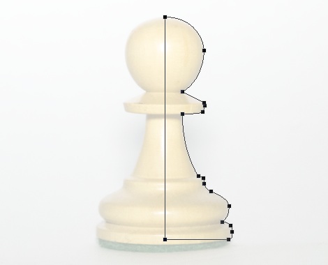 If you’re comfortable with the Pen tool, then use it to trace half the pawn on a new path, as seen here (if you find the Pen tool tricky, skip to step 8). Don’t follow the curve of the bottom of the pawn, but go straight across and join the top and bottom points with a single vertical line.