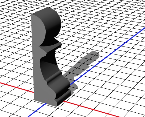 You can drag the workspace around using the Move tool, to view the pawn from any angle. But if you do so, make sure the pawn itself is not selected. It’s OK to move the viewing angle, but you won’t want to shift the object off its base. It should remain flat on that ground plane.
