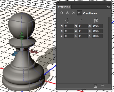 The object will, by default, revolve around its center, which is why all we got was a cylinder. At the top of the Properties panel you’ll see the Deformation Axis marker: click the center left marker to revolve it around the left edge. Suddenly, that outline will appear as a real pawn.