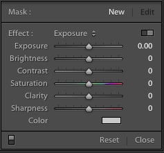By default, the Graduated Filter controls let you adjust one effect at a time (Exposure, Brightness, Saturation etc.). Click on the Show Effect Sliders to allow multiple effects for each gradient. This gives you more control over your corrections.