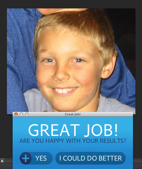 The first mission is to remove red eye from a photo (either yours on the one provided by Adobe). Once you’ve successfully used the Red Eye Tool and saved the file, you’ve earned your first points and reward.