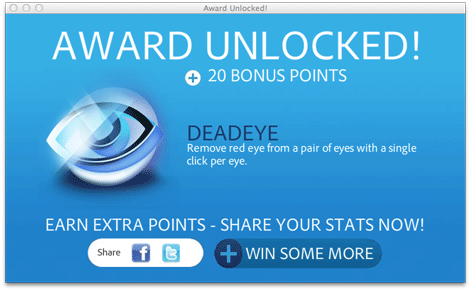 Of course, you can brag about your accomplishment to your Facebook friends (thereby inviting inquiries from your mom to fix all the red-eyed photos in her collection). Sharing your LevelUp accomplishments on Facebook and Twitter also earns you more game points.