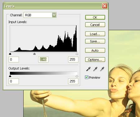 Click the Background layer in the Layers palette to select it. Go to Layer > New Adjustment Layer > Levels. Press OK to use the default Levels 1 name. Click and drag the grey arrow in the middle to the left and set it to 1.46 (Figure 3).