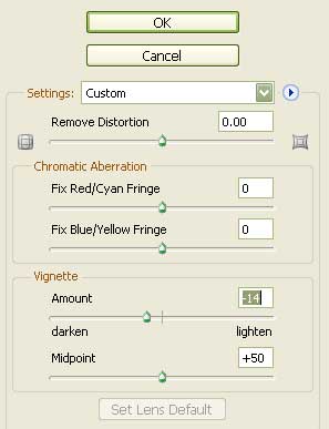 Click the Layers palette to work on all channels. Add a slight vignette by going to Filter > Distort > Lens Correction. Set the vignette to -14 and click OK (Figure 14).