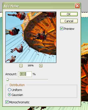 Go to Filter > Noise > Add Noise and change the settings to those shown in Figure 7. Click OK. Change the layer blending mode of this noise layer to multiply and set the opacity to only 4% (Figure 8).