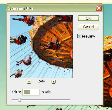 Now you need to blur the noise slightly. With the border still selected, go to Filter > Blur > Gaussian Blur set the Radius to 2.5 pixels (Figure 26). Press OK.