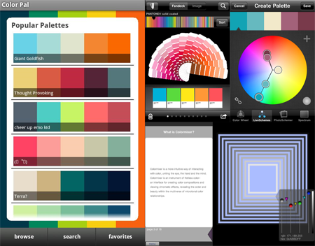 Exploring and assembling colors is fundamental to most creative work. There are top-notch Web-based tools to help you mix colors and build harmonious multi-color palettes (COLOURLovers, Adobe’s Kuler), but there are also apps built specifically for mobile devices. ColorPal for Android, ColorSchemer for iPhone, and Colormixer for iPad are among the best. Each lets you mix colors in a variety of ways, saving and often sharing individual colors or multi-color palettes built manually or automatically based on the first color. If you’re looking to stay within the predictable, color-accurate world of PANTONE, there’s even an app for that—at least for iOS. Using the myPANTONE iPhone (and iPad) app, you can select and work with colors in the massive PANTONE libraries. You can also extract colors from photographs stored on the device to be used as the basis for new palettes.
