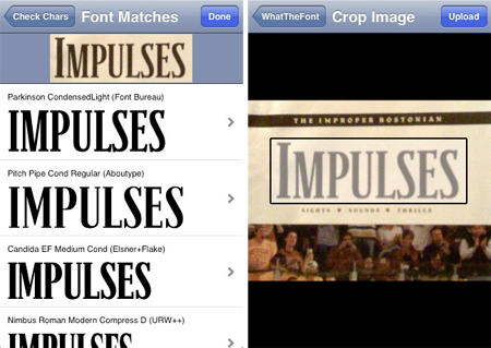 “What is that font?” If you’ve ever found yourself muttering that question, you’ll love the ability of the WhatTheFont app to answer it for you. Built on the tried and true WhatTheFont font identification engine at MyFonts.com, the WhatTheFont app identifies fonts in a photograph. Just take a picture with your iPhone, or open a picture saved on the device or from the Web or e-mail, and the app will examine the typeface used in the image and return possible matches. You can refine the choices and, once you find the right font, the app gives you the opportunity to buy it through MyFonts.com.
