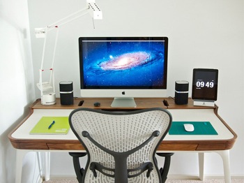 Readers of my columns know that I am obsessed with taming my office clutter. Apartment Therapy shows just how spare my desk could be if I stripped it down to the bare essentials. How Design gives me incentive. When stuck creatively, clean your desk as you would before moving to another location. Uncluttered desk = uncluttered mind.