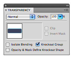 6. With the object still selected, open the Transparency panel and expand it so that all of its options are visible. Check the box marked Knockout Group. (You may need to click twice to get a check mark in the box.)