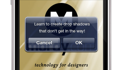 On my Mordy.com blog, I made note of my quest to create an iPhone skin entirely in Illustrator. In the process, one of the elements I had to create — the alert dialog — presented an interesting problem in that the dialog had an opaque stroke and a transparent fill. In Illustrator, you can easily apply an opacity setting to fills and strokes independently, but the dialog also has a drop shadow. And if the fill of the object is transparent, you can see the drop shadow through the fill, which isn’t called for in the design.