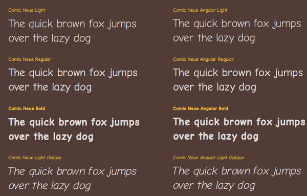 Comic Neue is the brainchild of Craig Rozynski, an Australian designer working in Japan. There are two variants: Comic Neue and Comic Neue Angular. The latter features angular terminals instead of round ones. Both come with light, regular, and bold weights, plus their oblique equivalents.