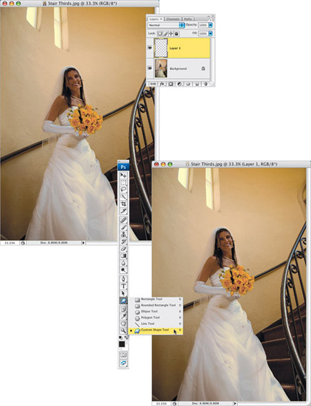 Now, go to the Toolbox and get the Custom Shape tool (as shown above), or press Shift-U until you have it.
