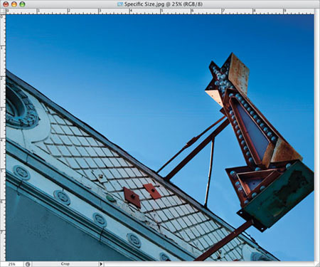 After your cropping border is onscreen, you can reposition it by moving your cursor inside the border (your cursor will change to an arrow). You can now drag the border into place, or use the Arrow keys on your keyboard for more precise control. When it looks right to you, press Return (PC: Enter) to finalize your crop, and the area inside your cropping border will be 10×8″. (For Figure 10, I made the rulers visible by pressing Command-R [PC: Ctrl-R], so you could see that the image measures exactly 10×8″.)