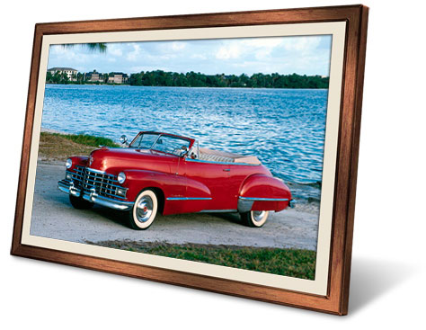 You can make the frame look like anything you want. Here, I’ve added wood texture over the top, set to Multiple mode, to turn the original silver frame into mahogany. I saved all three variations as separate layers in a single Photoshop file.