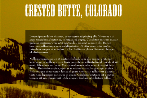 Click and drag a text box within the transparent black area. Change the font to something more suitable for the smaller type size and set the font color to white. I used randomly generated Lorem Ipsum text.
