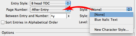 Figure 14. Use the Style list to apply a character style to the separator between the entry and the page number.