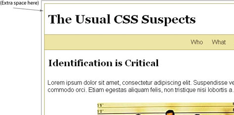 Browsers are programmed with default values for margins and padding for page elements. Chances are that the elements in your specific design call for totally different values. If you don’t make the margins or padding around elements explicit, the extra space may stem from inheriting and displaying the default values rather than your desired values.
