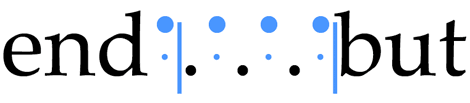 With InDesign’s Show Hidden Characters turned on, you can see how the discretionary line break characters have to be positioned to get this ellipse to break correctly. The ellipse is built using one-third em spaces (indicated by a big blue dot over a smaller one), and the discretionary breaks are indicated by the blue vertical bars.