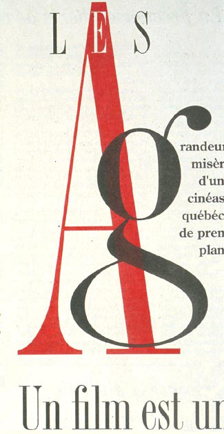 Dramatic display typography is often used today in newspapers—especially in features pages. Newspaper designer Lucie Lacava brought highly unusual and effective use of type to her redesign of the Montreal daily “Le Devoir,” a paper well known for its role in the intellectual life of Québec. This detail from the first page of the arts section (“Les Arts”) mixes type in visually arresting ways, drawing the reader in to the story below (see Figure 7).