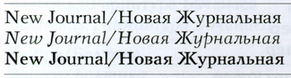 Sometimes these faces are digitized versions of typefaces designed in Soviet times for older printing technologies at Polygrafmash, the state-supported type design bureau. New Journal is one of those: designed in 1963 by Mikhail Rovensky as a text and display face (in regular, italic, and bold) with a slight but remarkable downward taper to the vertical stems. In the lowercase, the effect is more pronounced in the Cyrillic than in the Latin, because our alphabet has so many rounded characters compared with the many vertical strokes in lowercase Cyrillic. The Cyrillic cursive (italic) is closer to the Latin in that regard, with more rounded letterforms. Used for a Western language, New Journal is probably most striking in all-caps. There are certain Latin letters that look oddly cramped, such as the capital J and the lowercase g; but there are Western typefaces that treat these letters much the same.
