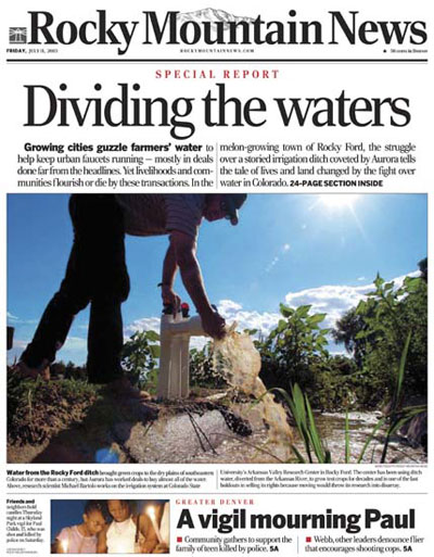 Figure 1: A front page from the “Rocky Mountain News”; the primary typeface is a custom design, called Rocky, by Matthew Carter.