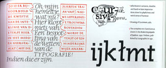 Dutch Type leads off with a very good historical introduction, “Early type design and printing in the Low Countries,” and it goes on with chapters on the well-known and lesser-known typographers and type designers of the early 20th century, and the foundries that they designed for. But the focus is largely contemporary; the bulk of the book is about Dutch type designers who are working today, including many who were once the hot young newcomers and are now established and recognized. To divide up this wide field, Middendorp groups his modern subjects under a number of thematic titles: “Painters and penmen,” “A typographic counterculture,” and “Printing types for a changing technology,” for example.