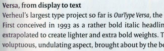 Some very beautiful type designs have been created in the “incised” form, but never anything as happily readable in extended text as Versa. The Versa family was expanded in the course of developing this book—to include, for instance, the condensed sans serif version used in the captions—and it’s available from Fred Smeijers and Rudy Geeraerts’s recently formed foundry OurType.