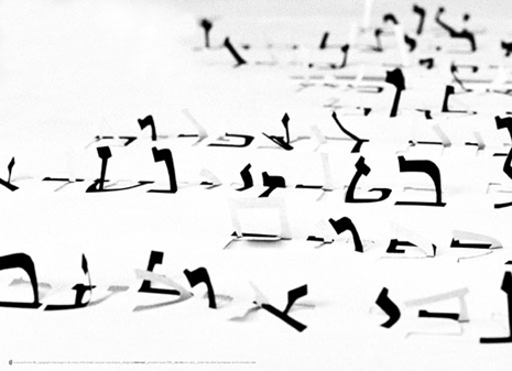 If you don’t read Hebrew, then there are fewer familiar forms to recognize among the morphed and melted shapes in these photographs. Yet they are letters, and Ezer explains that a Hebrew reader would recognize many of them. Some, though, are too altered to be clearly identifiable, even if Hebrew is your native language. The play of meaningful symbols and bizarre shapes is fundamentally abstract; it’s not typography.