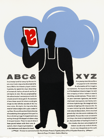 What’s unique may be their combination of “fine press” sensibility and a freewheeling approach to typography and art. You don’t often see letterpress these days in Futura (a favorite typeface of Chris’s); more often, it’s a delicate, Renaissance-derived face like Garamond. Stern & Faye have command of both idioms, and mix them freely.
