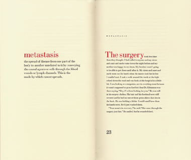 Figure 4: Two-page spread from Rebecca Brown’s “Excerpts from a Family Medical Dictionary” (Grey Spider Press, 2001).