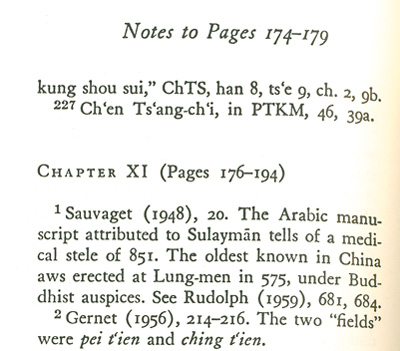 Figure 10. Detail from a page of endnotes in a book (The Golden Peaches of Samarkand) where the designer did remember to include the relevant page ranges (in both the subheads and the running heads to the endnotes). Ironically, the running heads in the chapters themselves do not include the chapter number, just the title; and the subheads in the endnotes do not include the chapter title, just the number.