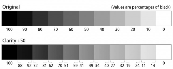 The Basic Tone edge contrast enhancements for Shadows, Highlights, and Clarity are engineered to take advantage of the fact that the human eye has evolved to recognize objects and detail by seeking edge contrast. Does this effect make images look too digital? Not necessarily to those experienced in the traditional darkroom where edge enhancement was called acutance, adjusted by changing the mixture and timing of darkroom chemicals. What the Basic Tone sliders do can be seen as a digital interpretation of the edge enhancement techniques in the traditional darkroom.
