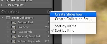 Figure 4. When in the Slideshow module, you’ll have the option to create a Slideshow in the Collections panel.
