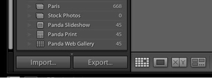 Figure 5. Note the unique icons for slideshows, prints, and web galleries.