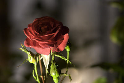 To shoot the rose image below, I encountered almost every difficulty I’ve mentioned so far. First, the camera had difficulty focusing, so I had to use a flashlight to get the autofocus mechanism to lock.