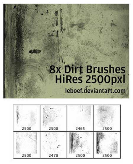 Go to page 2 for brushes that evoke rust, splatters, stains, steampunk, scratches, and more.